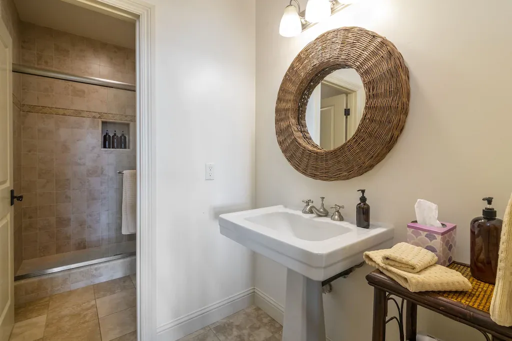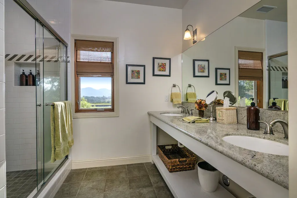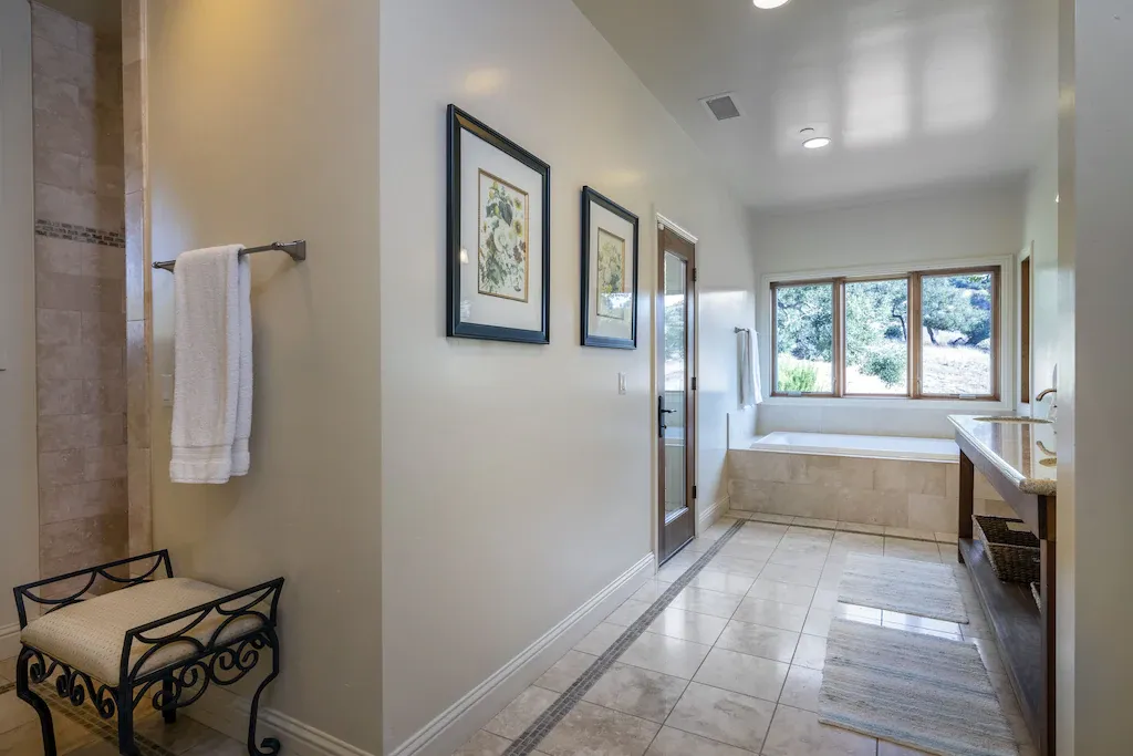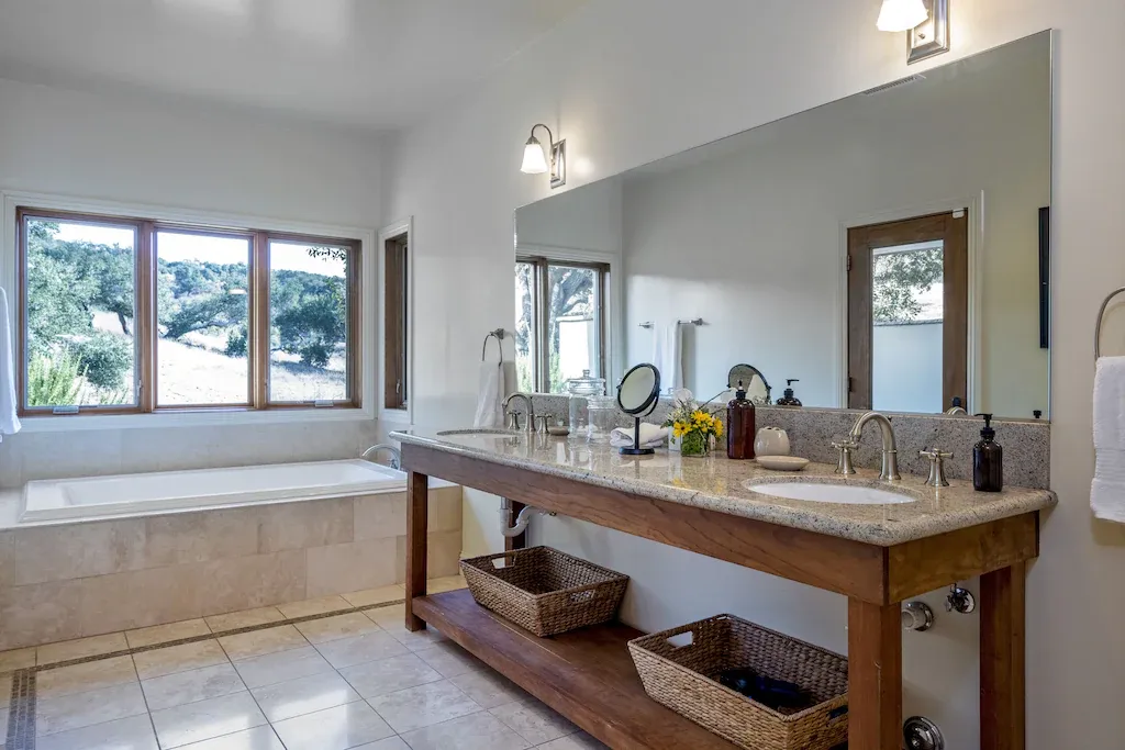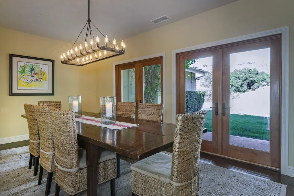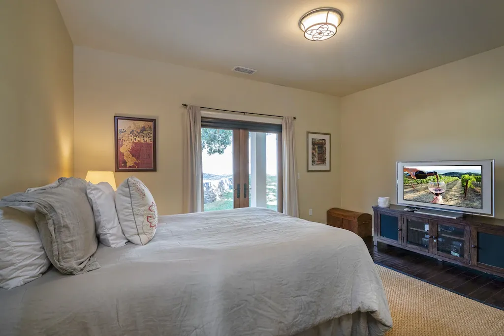 Oak Valley Ranch is nestled amongst mature oak trees and sits atop 20 magnetic acres where you and your guests will find total privacy. Shaded by a large oak tree, the back yard at Oak Valley Ranch is perfect for entertaining or simply relaxing with family and friends. Enjoy sitting around the teak wood patio table, playing Foosball, or having a go on the bocce ball court! Just a five-minute drive to town, Oak Valley Ranch is the ideal location for those guests looking to wine taste, shop, or dine.
