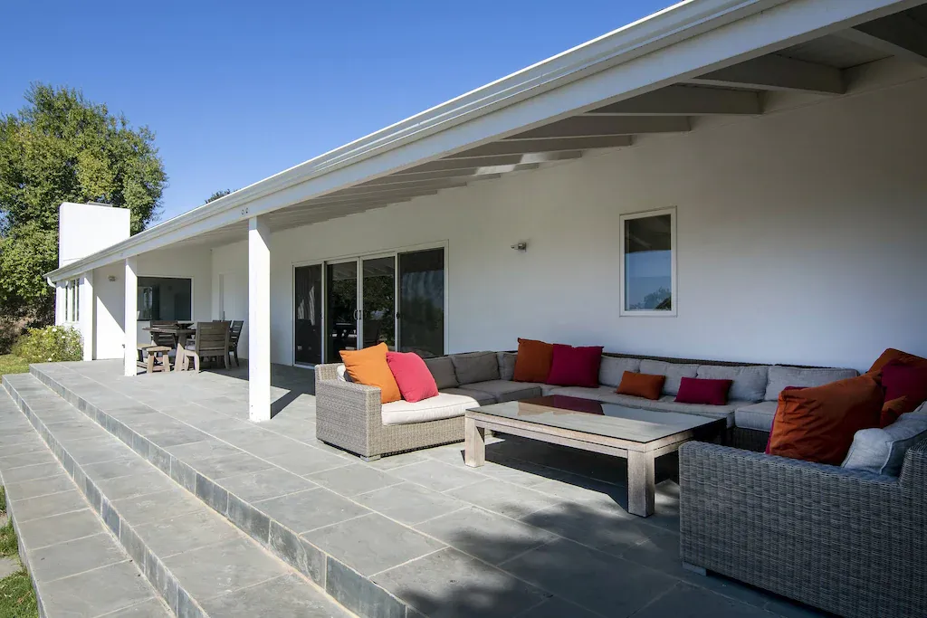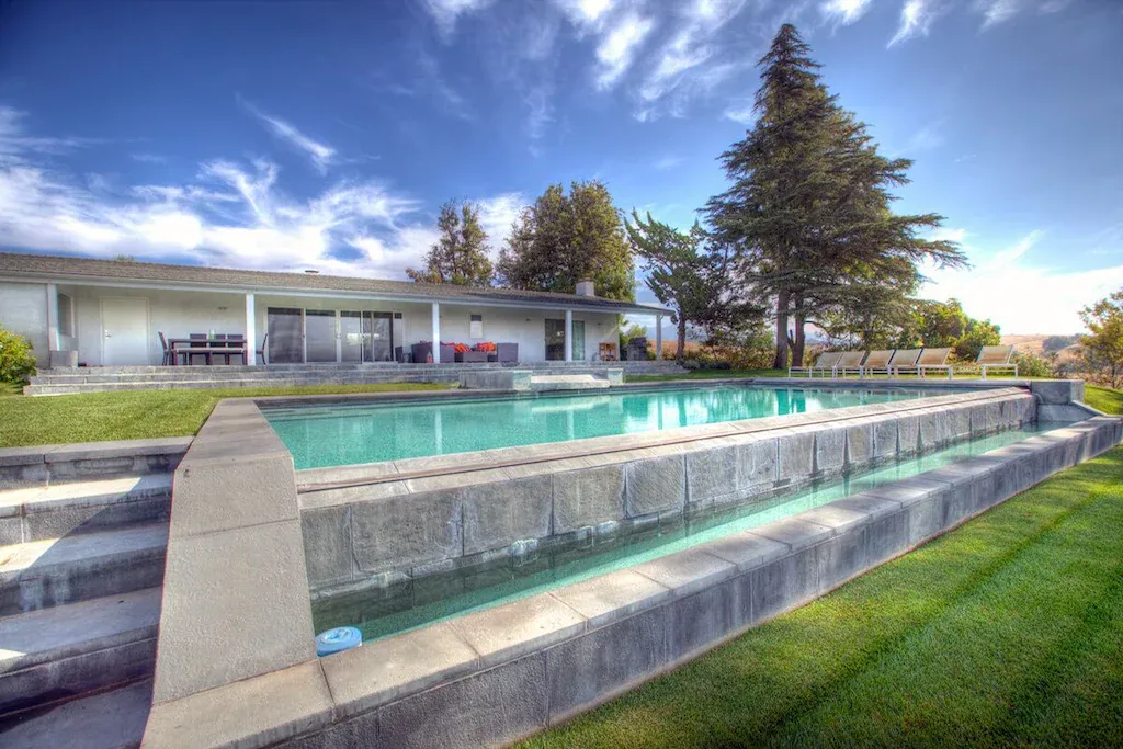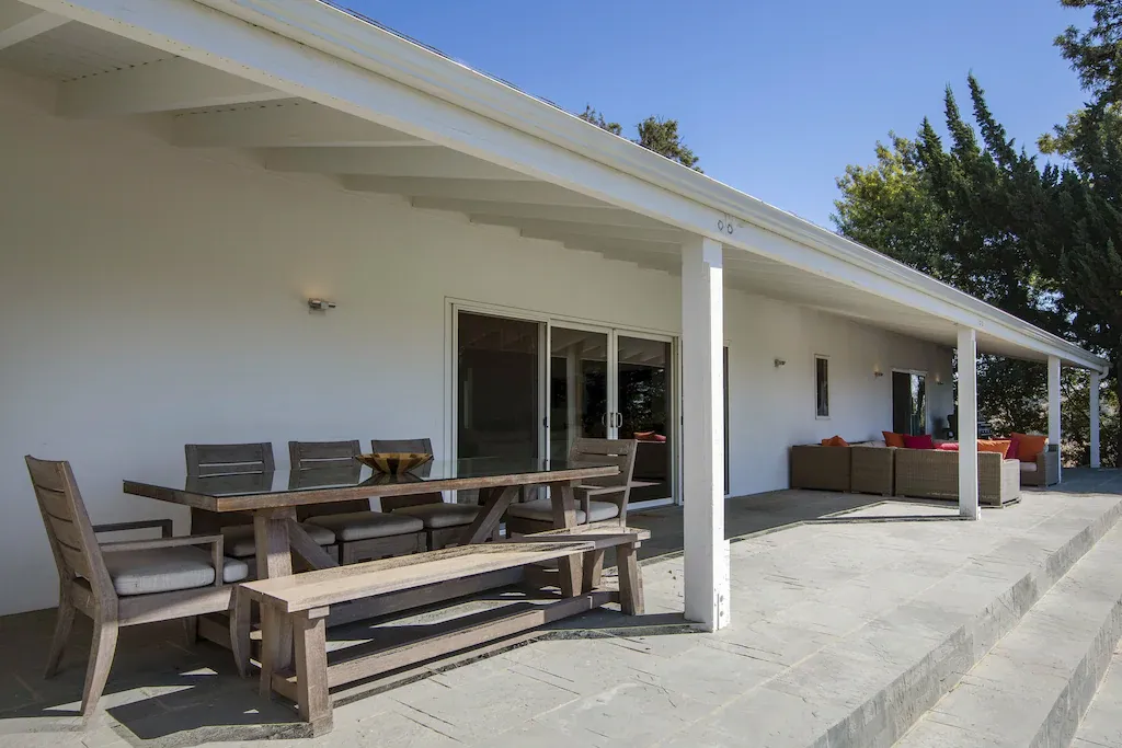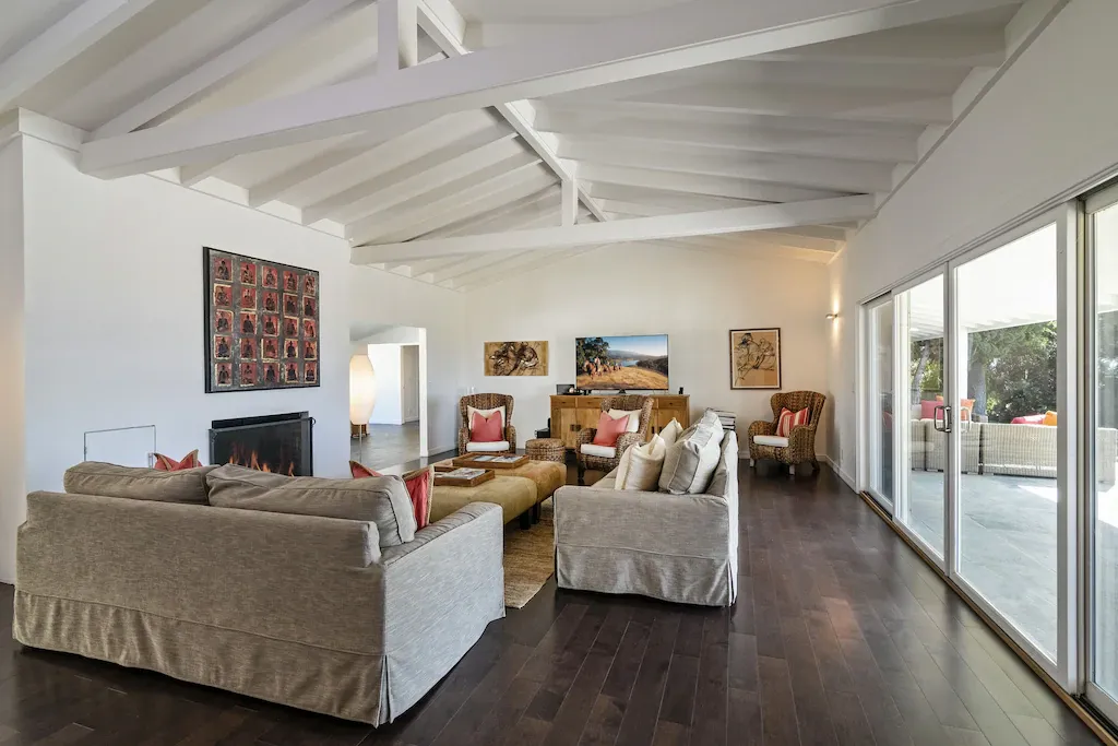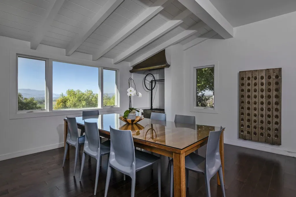 Experience a view of the Santa Ynez Valley unlike any other. This newly remodeled six-bedroom 4 ½ bathroom home boasts magnificence. Estelle Ranch is located on the desirable Roblar Avenue and sits atop a hill that overlooks neighboring vineyards. The property features complete privacy, yet it’s just a 10-minute drive to downtown Los Olivos or Santa Ynez. A perfect location and great for those who like to bike as well. The home has magic to its 4,500 square feet of clean lines and simple elegance. The gourmet kitchen is fully integrated and a central gathering spot. Maximize the views and outdoor space by opening the expansive sliding glass doors.