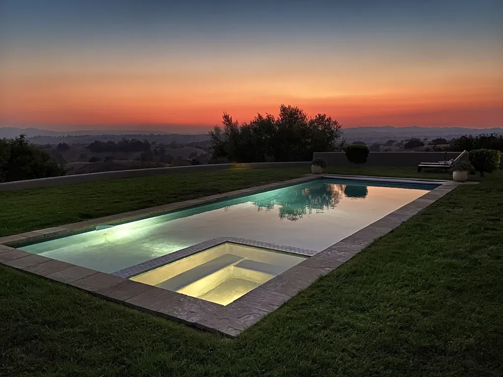 With contemporary Mediterranean design, this home is a five bedroom architectural masterpiece built by noted vineyard architect, Robert Mehl. Situated on a hilltop overlooking the entire Santa Ynez Valley, the serene 270-degree views simply take your breath away. Relax in the beautiful courtyard next to the fireplace or sunbathe by the pool and hot tub. Either way, you will surely enjoy every minute spent at this completely private estate.