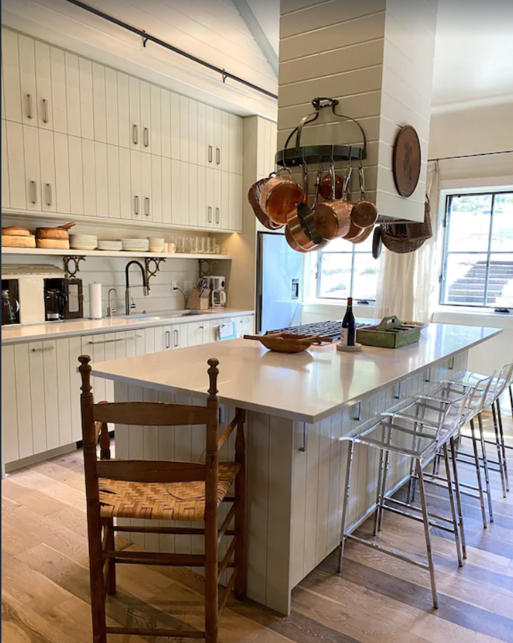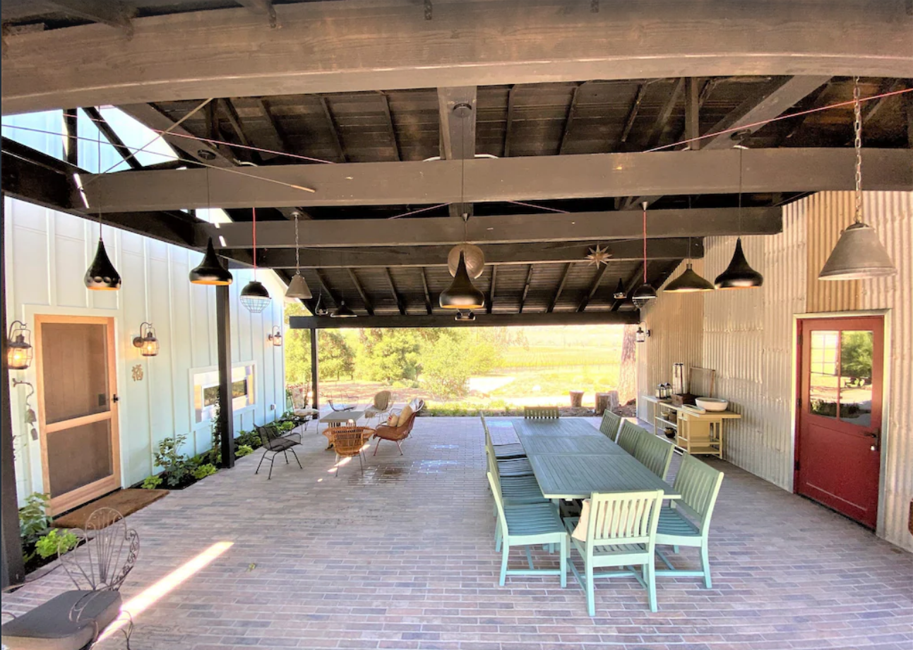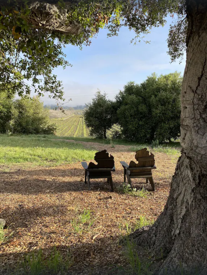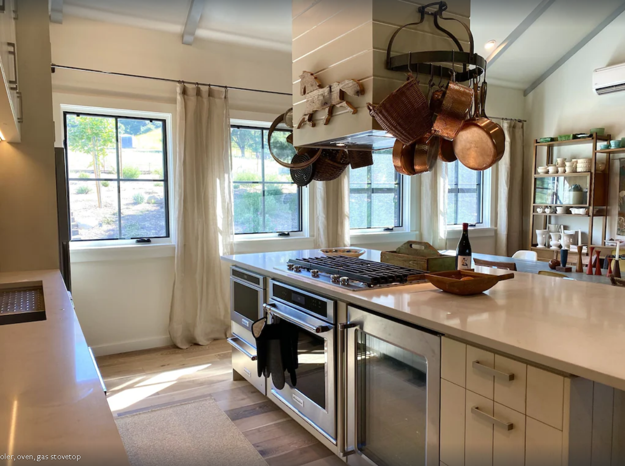 Cook a meal in the chef’s kitchen, read a book in the vaulted living and dining room with sleeping loft (two cot size beds 32' x 75'). After a day of bike riding along Santa Rosa Road, wine tasting at any number of nearby vineyards, or shopping in Los Alamos, Santa Ynez, Los Olivos and Solvang, you will enjoy the ample brick breezeway for outside dining and relaxing. After dark, wrap yourself in blankets and stargaze. Early next morning, enjoy the lifting fog and vineyard views from the Adirondack chairs under the huge old live oak. You will see cows, pigs, chickens being fed and you will wake up to the crowing of roosters and mooing of cows from the working farm. Visit the espaliered heirloom pear orchard in the far east end of the farm.