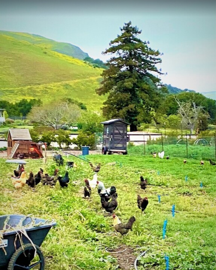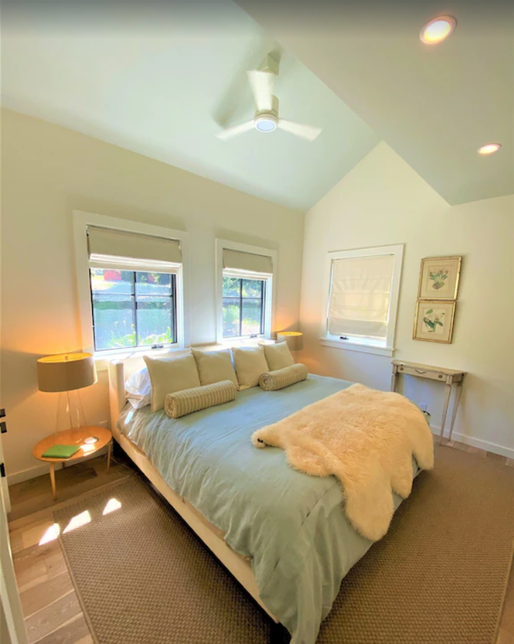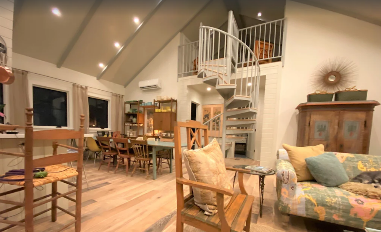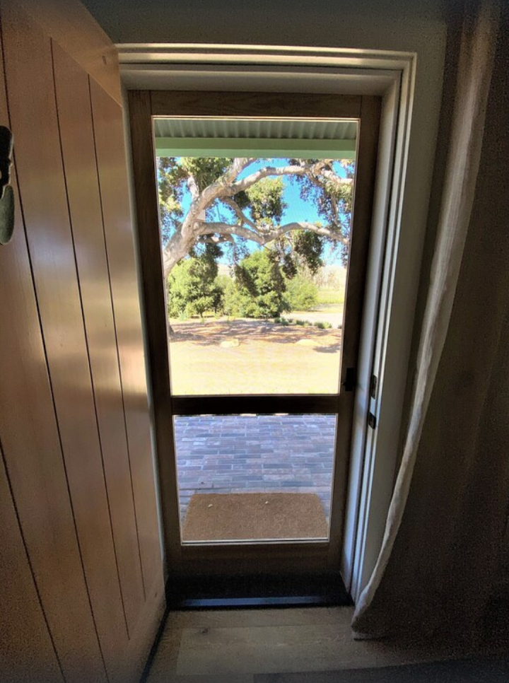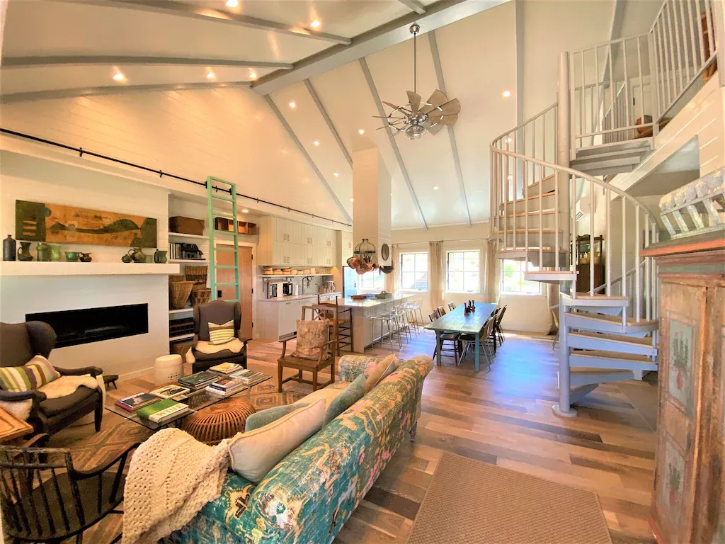 Cook a meal in the chef’s kitchen, read a book in the vaulted living and dining room with sleeping loft (two cot size beds 32' x 75'). After a day of bike riding along Santa Rosa Road, wine tasting at any number of nearby vineyards, or shopping in Los Alamos, Santa Ynez, Los Olivos and Solvang, you will enjoy the ample brick breezeway for outside dining and relaxing. After dark, wrap yourself in blankets and stargaze. Early next morning, enjoy the lifting fog and vineyard views from the Adirondack chairs under the huge old live oak. You will see cows, pigs, chickens being fed and you will wake up to the crowing of roosters and mooing of cows from the working farm. Visit the espaliered heirloom pear orchard in the far east end of the farm.